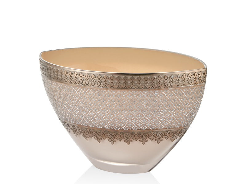 Şık formu ve platin kaplama yüzeyiyle dikkat çeken bu dekoratif kase, lüks detaylarıyla bulunduğu alana zarafet katar.