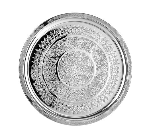 Zişan Desenli Platin Kaplama Dekoratif Tepsi